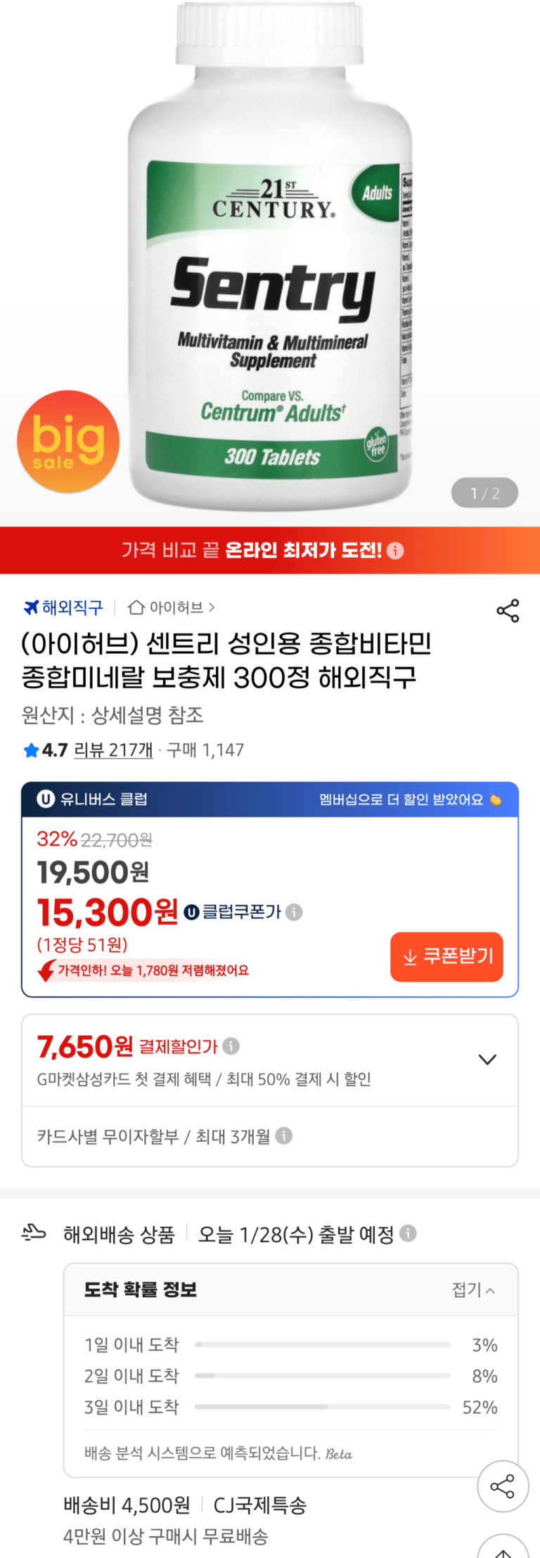Bổ sung đa vitamin tổng hợp Sentry 300 viên x 2