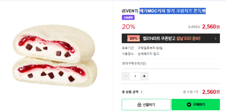 [Naver] Bánh mì dai kem phô mai dâu tây MegaMGC