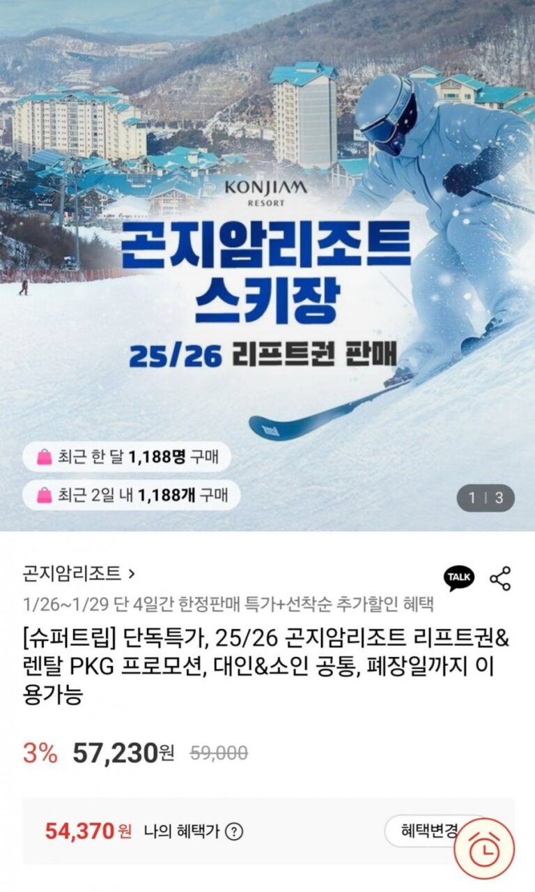 Khuyến mãi cho thuê và vé thang máy Konjiam Resort PKG