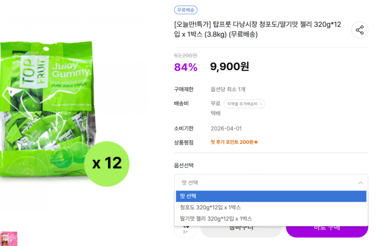 Top Fruit Vị Thạch Xanh Nho/Dâu Đà Nẵng (Tùy chọn) 12 túi (3.8kg)