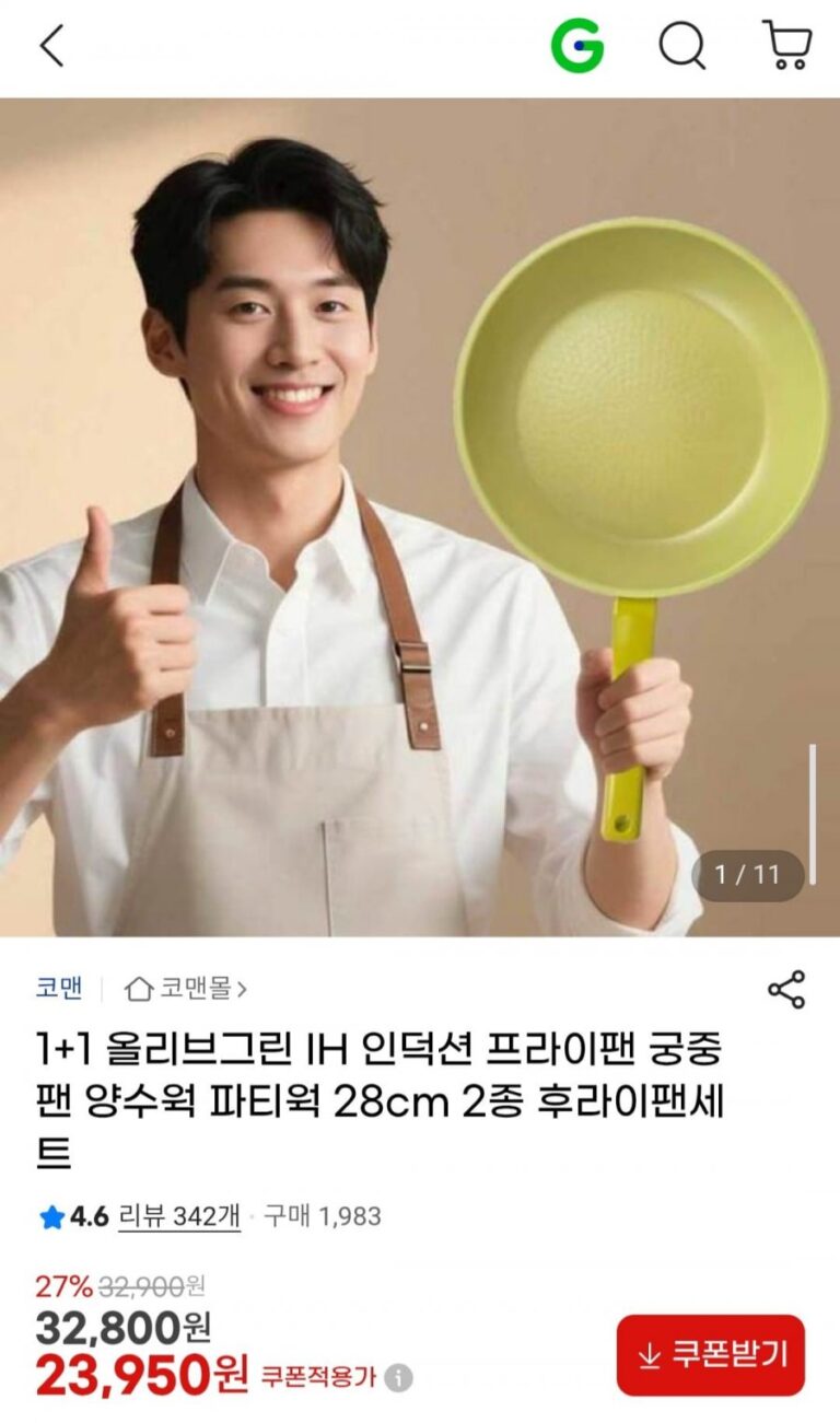 Koman 1+1 Chảo rán IH màu xanh ô liu/Chảo Gungjung/Chảo đôi/Chảo tiệc 28cm 2 loại lựa chọn