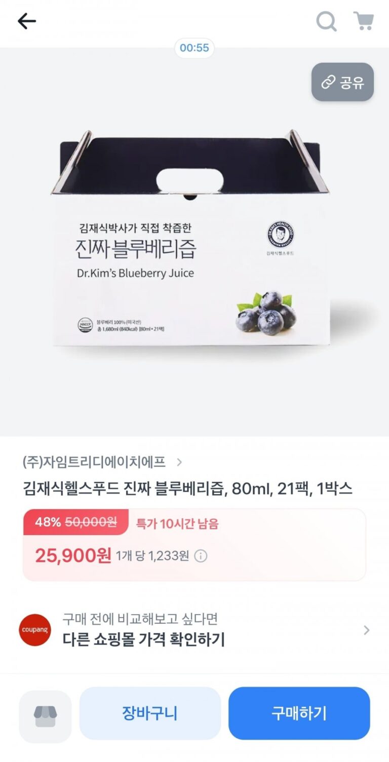 Jaesik Kim Health Food Real Blueberry Juice 80ml 21 gói 1 hộp