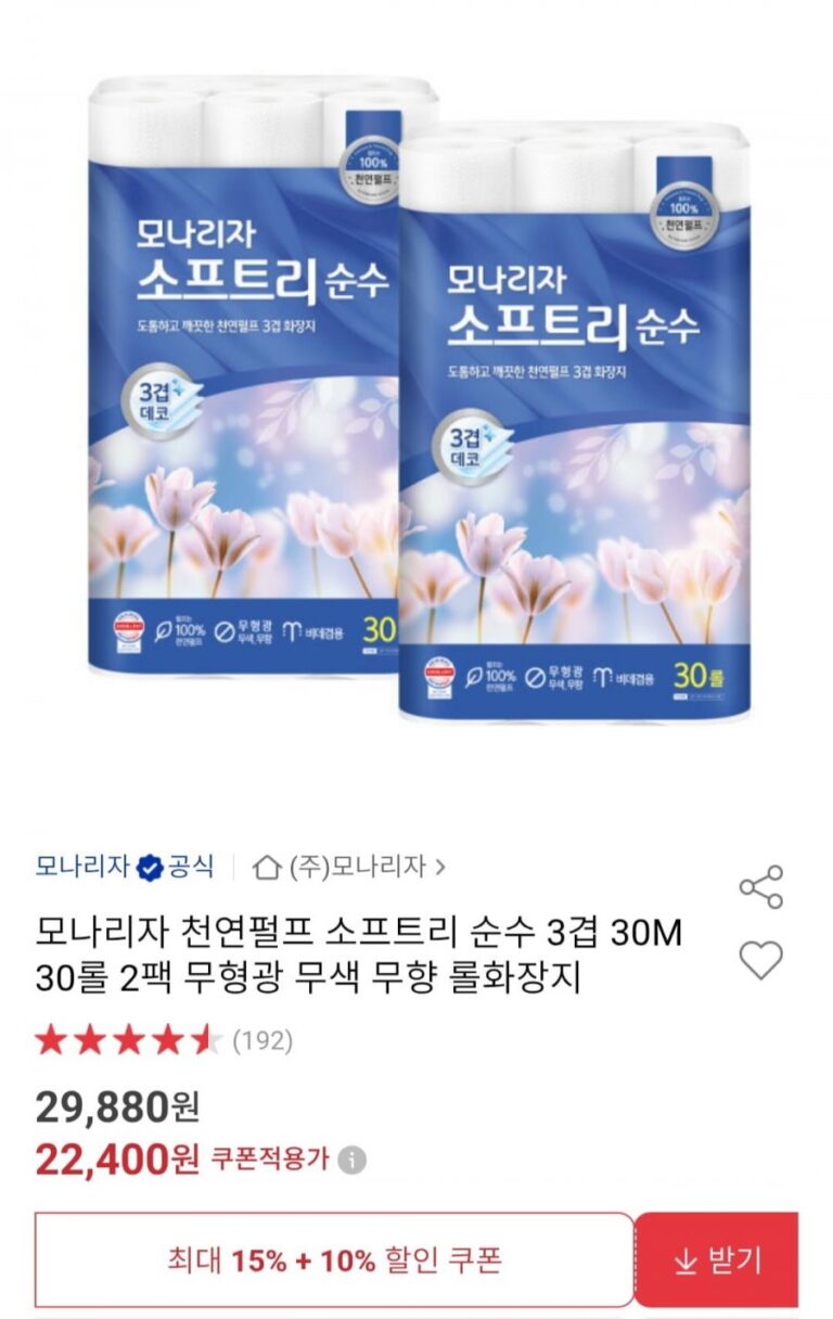 Mona Lisa Bột Giấy Tự Nhiên Mềm Mại Nguyên Chất 3 Lớp 30M 30 Cuộn 2 Gói Giấy Vệ Sinh Cuộn