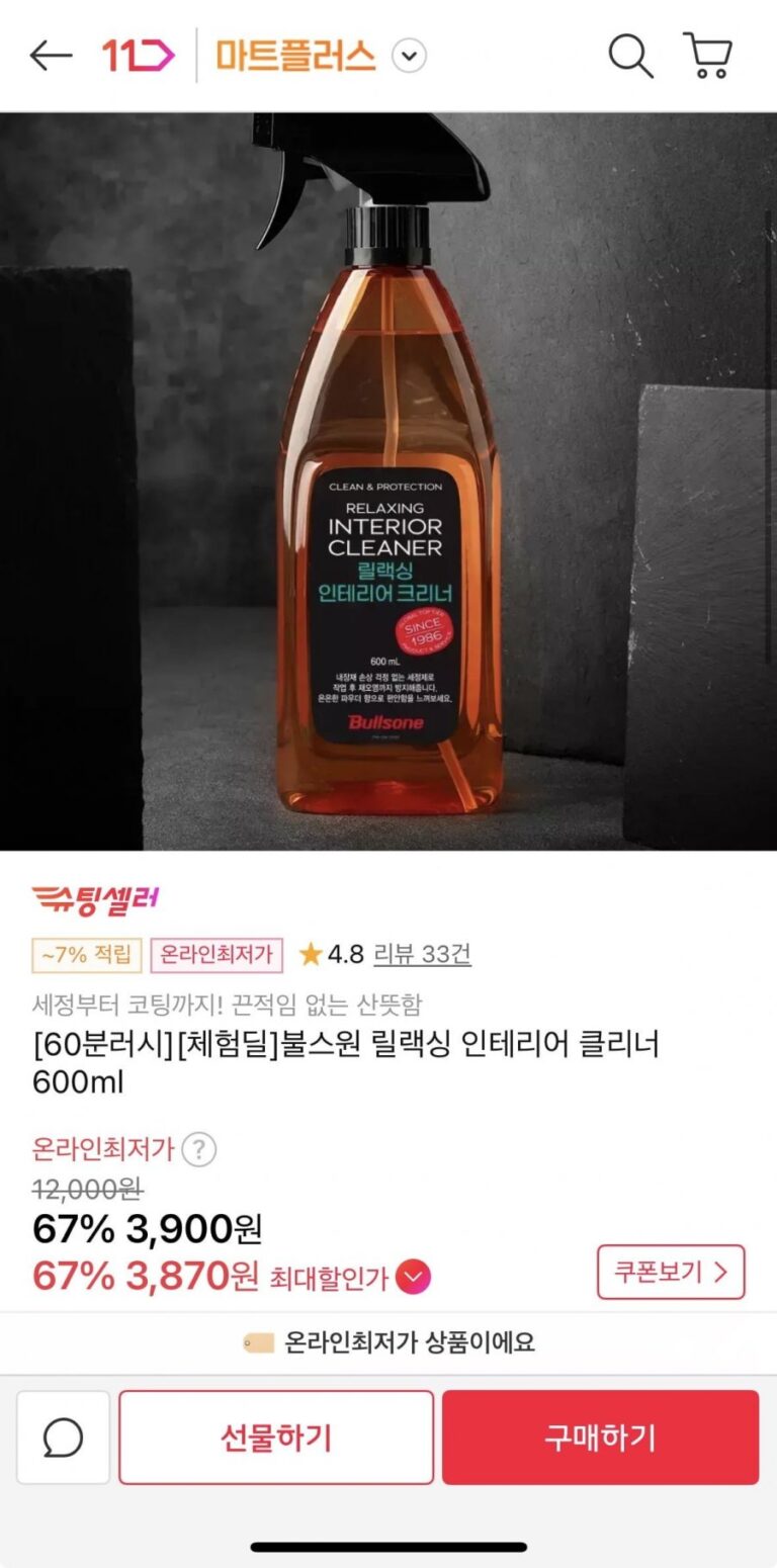 불스원 인테리어 클리너 600ml