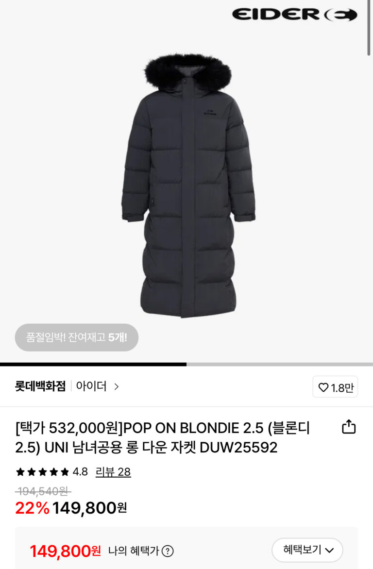 [Lotte On] Áo khoác dài Eider Unisex Blondie 2.5