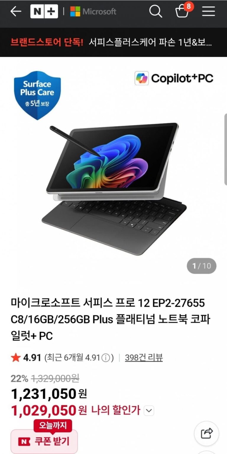 Microsoft Surface Pro 12 EP2-27655 C8/16GB/256GB Plus Platinum Laptop Co-Pilot+ PC