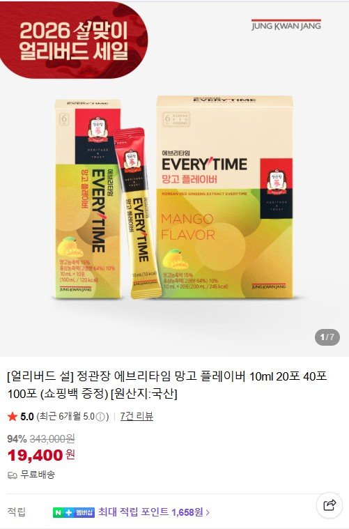 CheongKwanJang Hương Xoài Everytime 10ml 20 gói