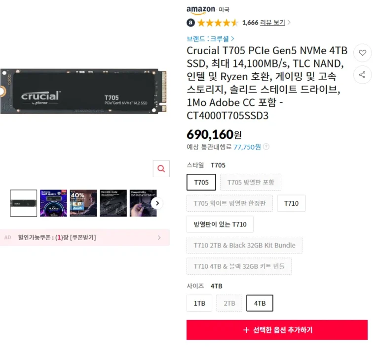 Crucial T705 PCIe Gen5 NVMe 4TB