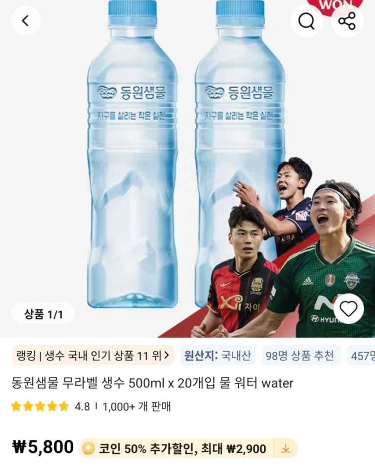 [Ali] Nước đóng chai không nhãn Dongwon Saemmul 500ml x 20 miếng khuyến mãi xu