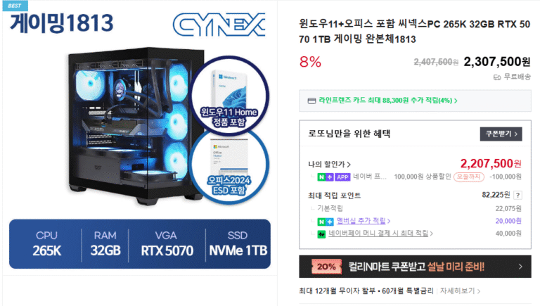 [Naver] 265K_32GB_ RTX 5070_1TB Bộ hoàn chỉnh Windows 11+Office