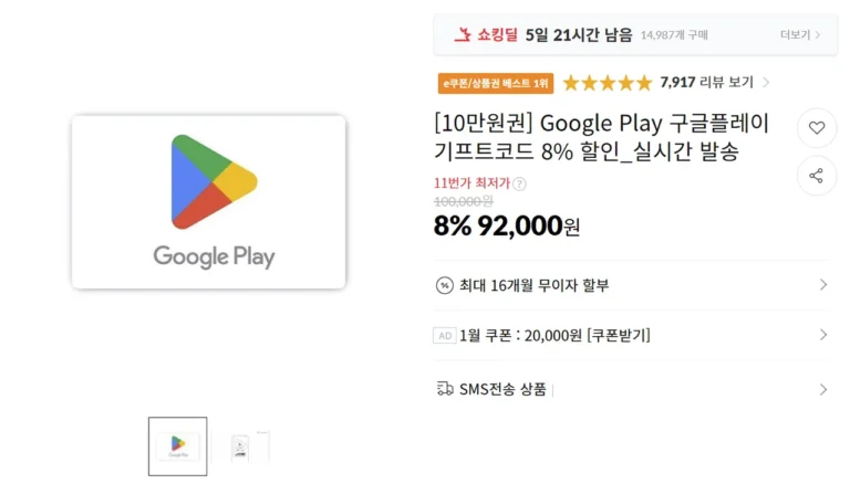 Google Play Mã quà tặng Google Play 100.000 giảm giá 8%