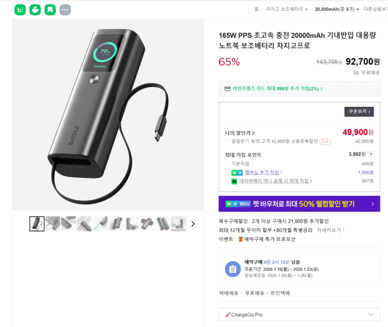 [Naver] Props 165W PPS sạc cực nhanh 20000mAh đặt hàng trước