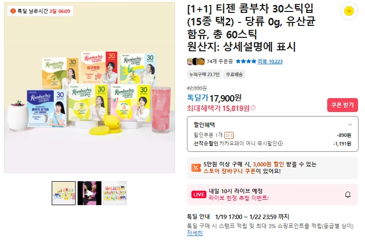 [1+1] Teazen Kombucha 30 que (chọn 2 trong 15 loại) – 0g đường, chứa vi khuẩn lactic, tổng cộng 60 que