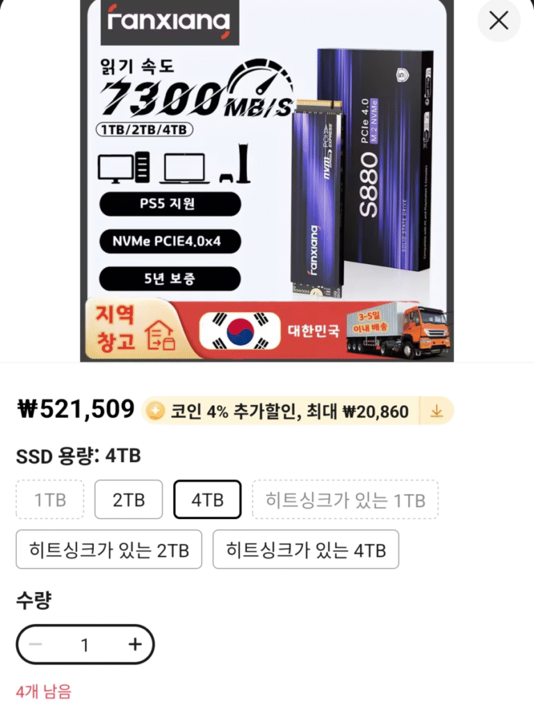 [Ali] Bakery Fanxiang S880 SSD 4TB Bảo hành 5 năm tại Hàn Quốc