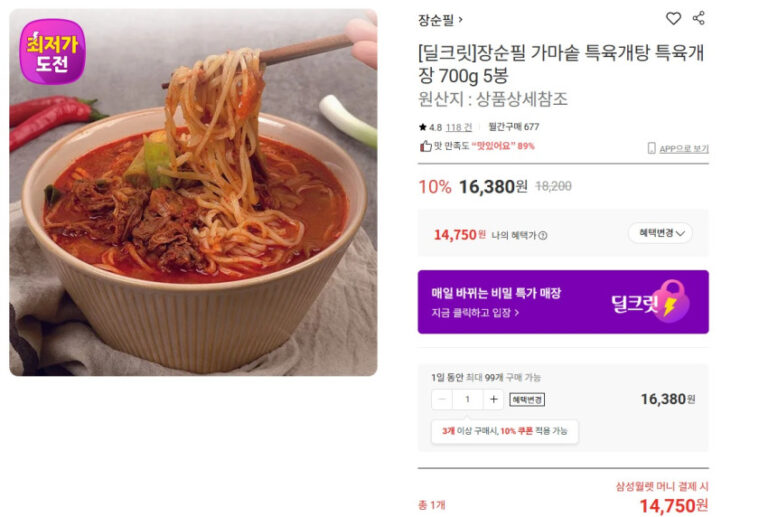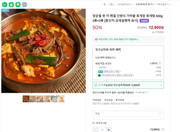 Jang Soon-pil Yukgaejang 600g 2 túi + 2 túi