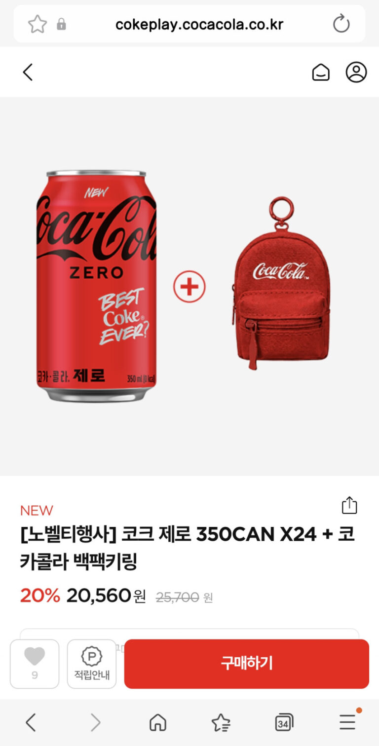 Móc khóa ba lô Coke Zero 350CAN X24 + Coca-Cola