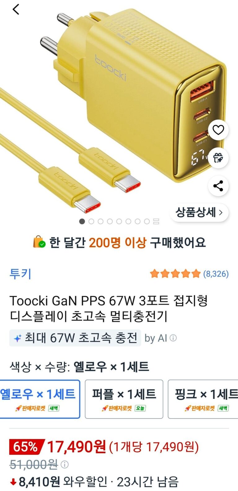 Toocki GaN PPS 67W Màn hình nối đất 3 cổng sạc đa năng cực nhanh