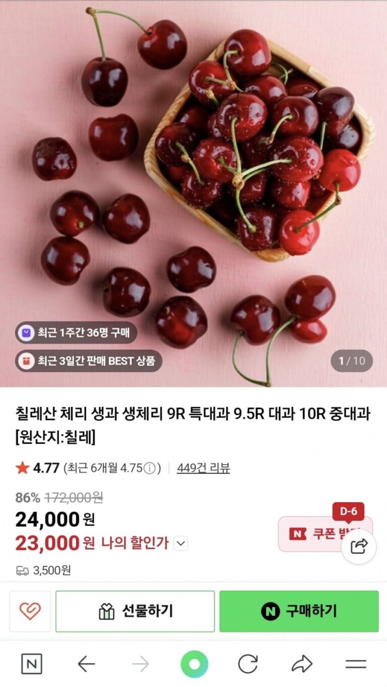 Anh đào tươi Chile 2kg 10R vừa đến 9,5R lớn
