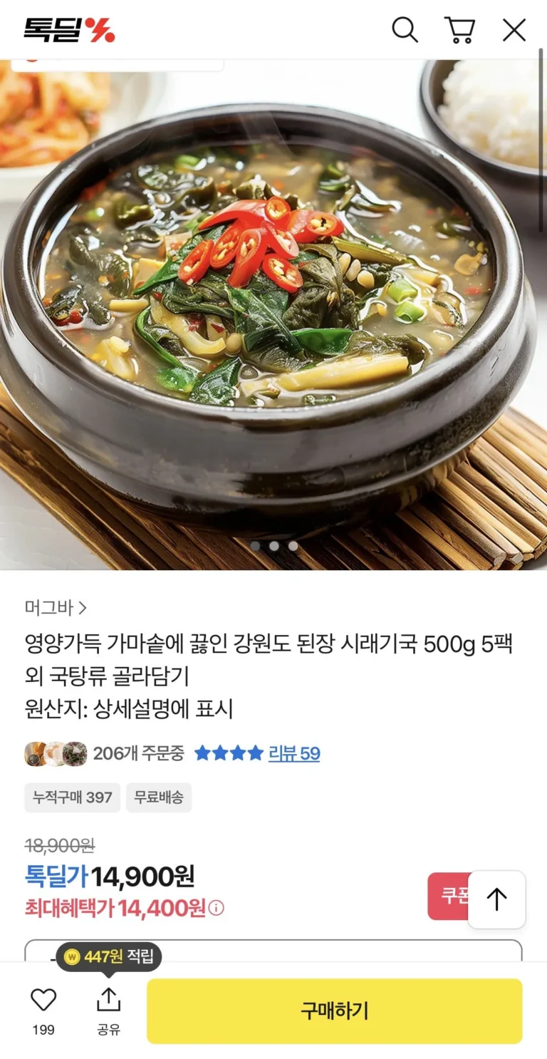 5 gói súp củ cải tương đậu Gangwon-do 500g luộc trong vạc đầy đủ chất dinh dưỡng
