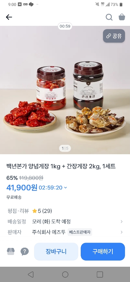 [Loại khác] Cua cái đảo Yeonpyeong sốt đậu nành 2kg + cua tẩm gia vị nội địa 1kg