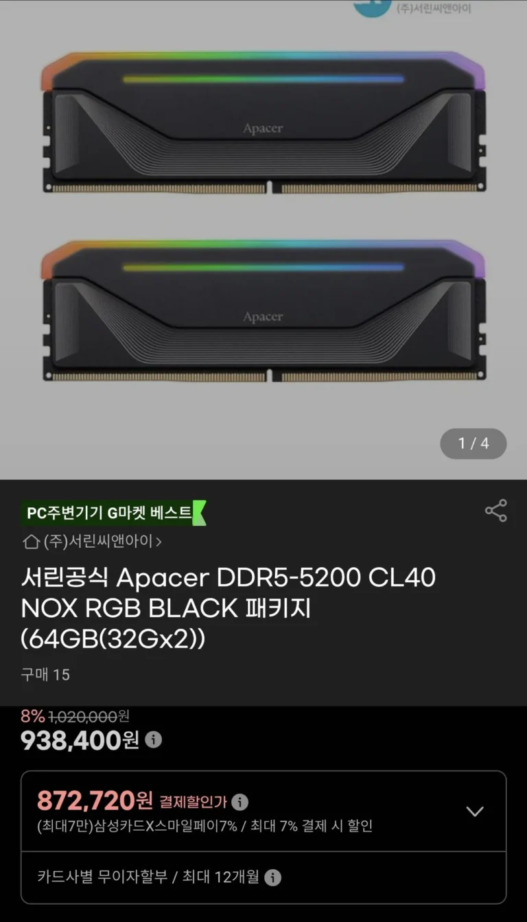 Gói Apacer chính thức của Seorin DDR5-5200 CL40 NOX RGB BLACK (64GB(32Gx2))