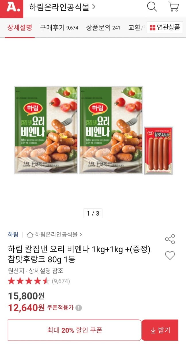 Harim Kaljib Cooking Vienna 1kg+1kg+Xúc xích Frankfurt 80g 1 túi