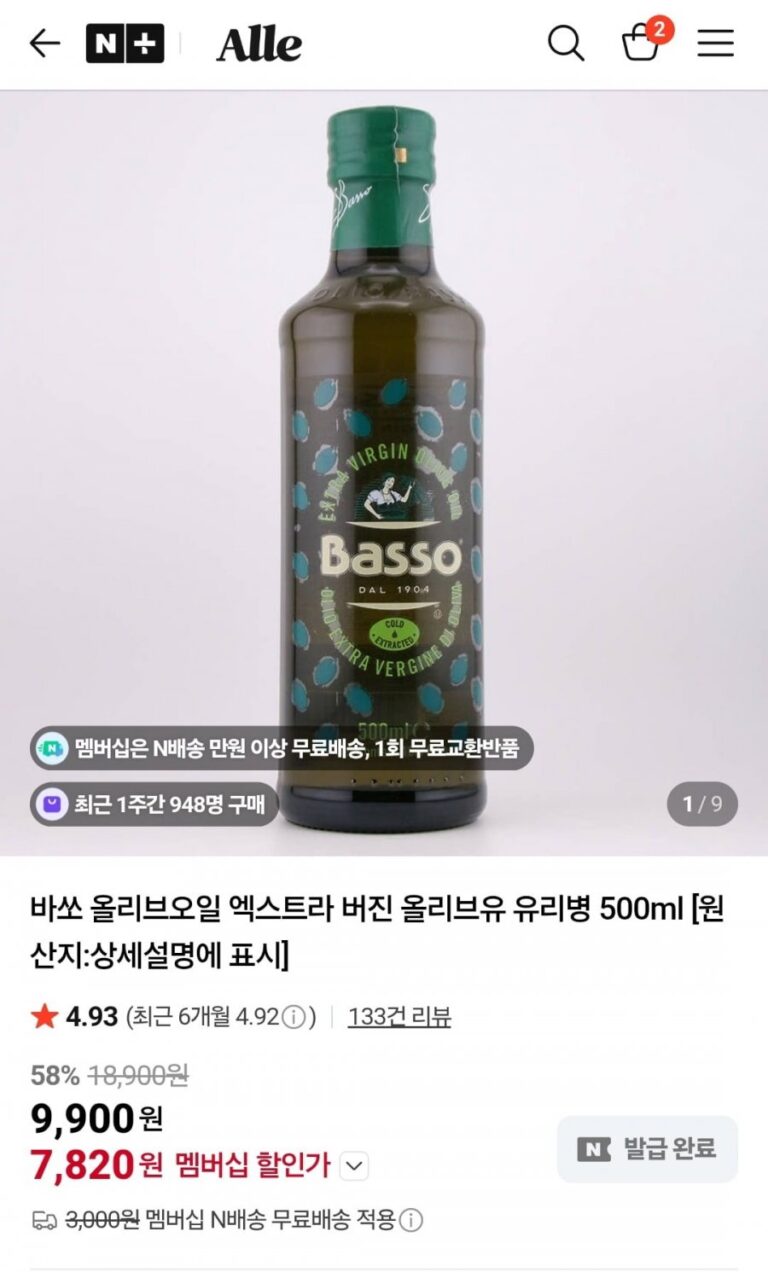 Dầu ôliu Basso Extra Virgin Olive Oil 500ml