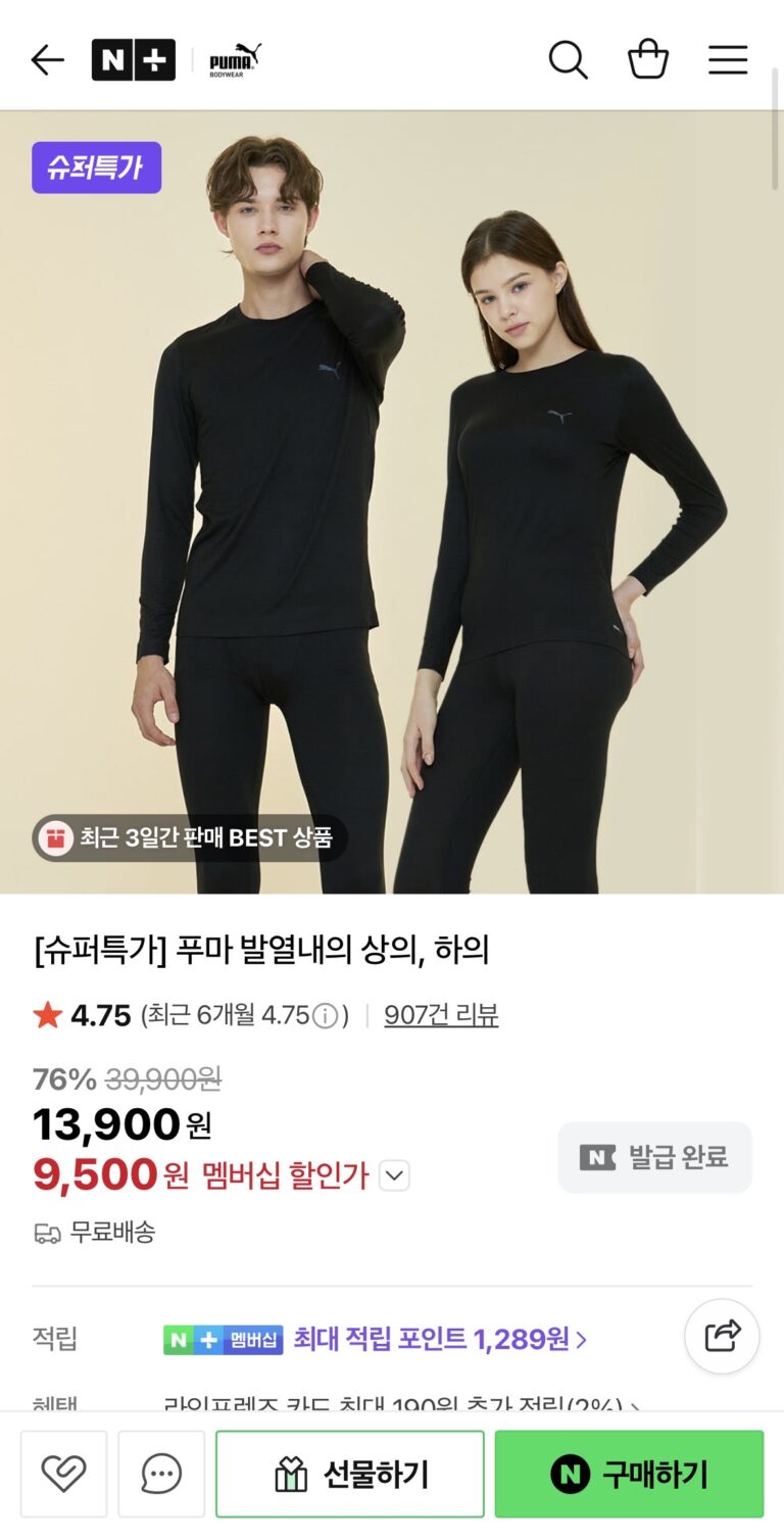 [Naver] Áo và quần lót giữ nhiệt Puma