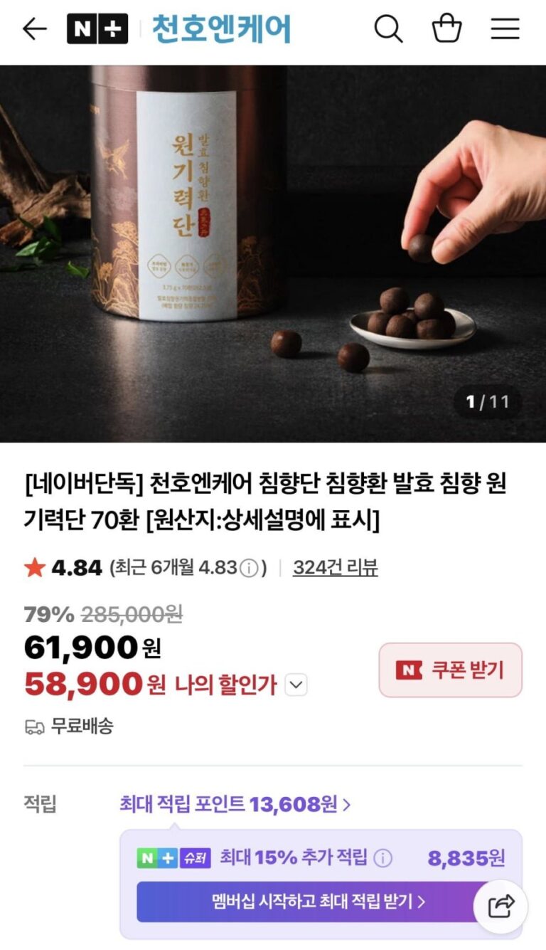 Viên nén trầm hương Cheonho NCare Viên năng lượng trầm hương lên men 70 viên