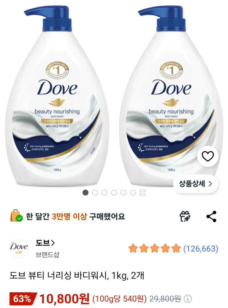 Sữa tắm dưỡng thể Dove Beauty, 1kg, 2 chiếc