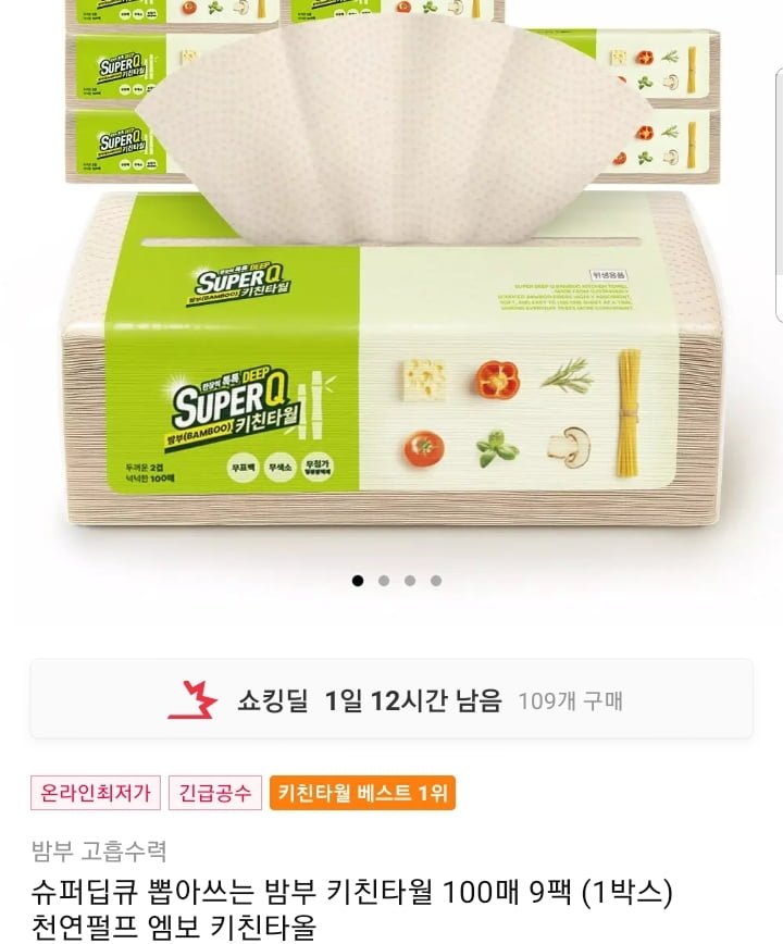 Khăn lau bếp tre tái sử dụng Super Deep Q 100 tờ 9 gói