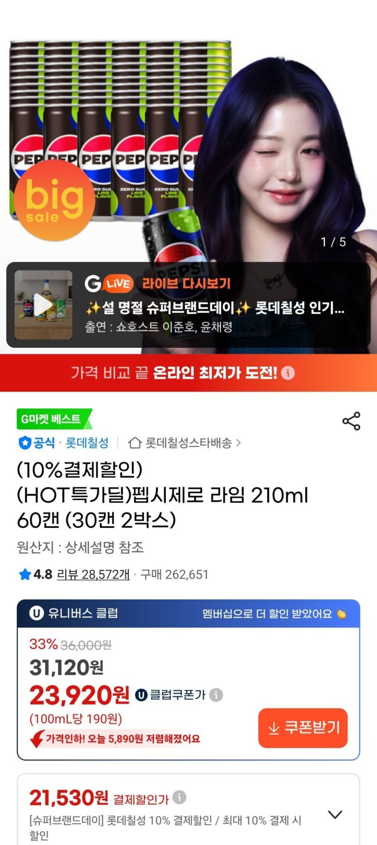 UCL) Pepsi Zero Lime 210ml 60 lon (2 hộp 30 lon)