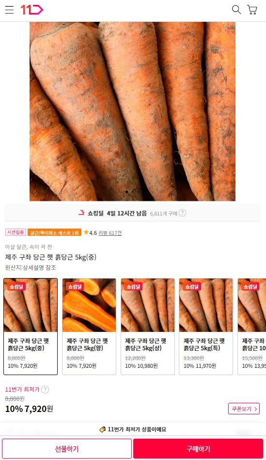 [lần 11] Cà rốt Jeju Gujwa 5kg (cỡ vừa)