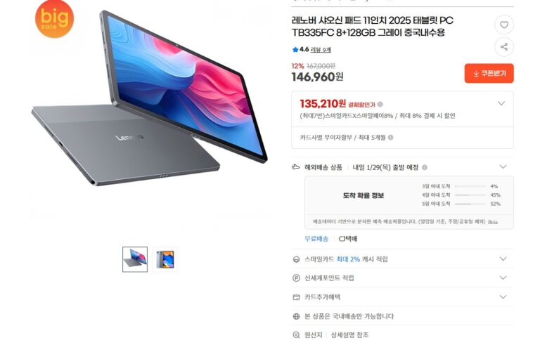 [GMarket] Máy tính bảng Lenovo Xiaoxin Pad 11 inch 2025 TB335FC 8+128GB dành cho thị trường nội địa Trung Quốc