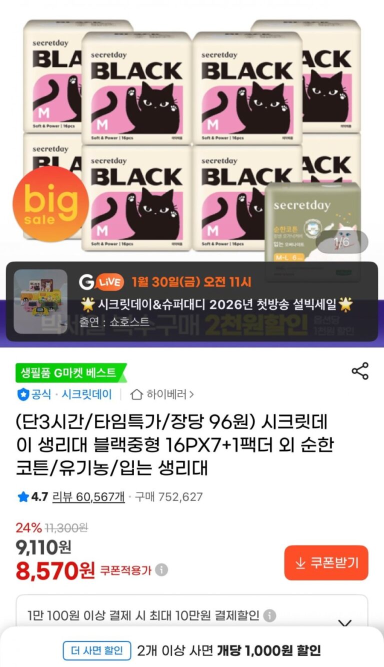 Băng vệ sinh qua đêm Secret Day Black Wearable 4 gói