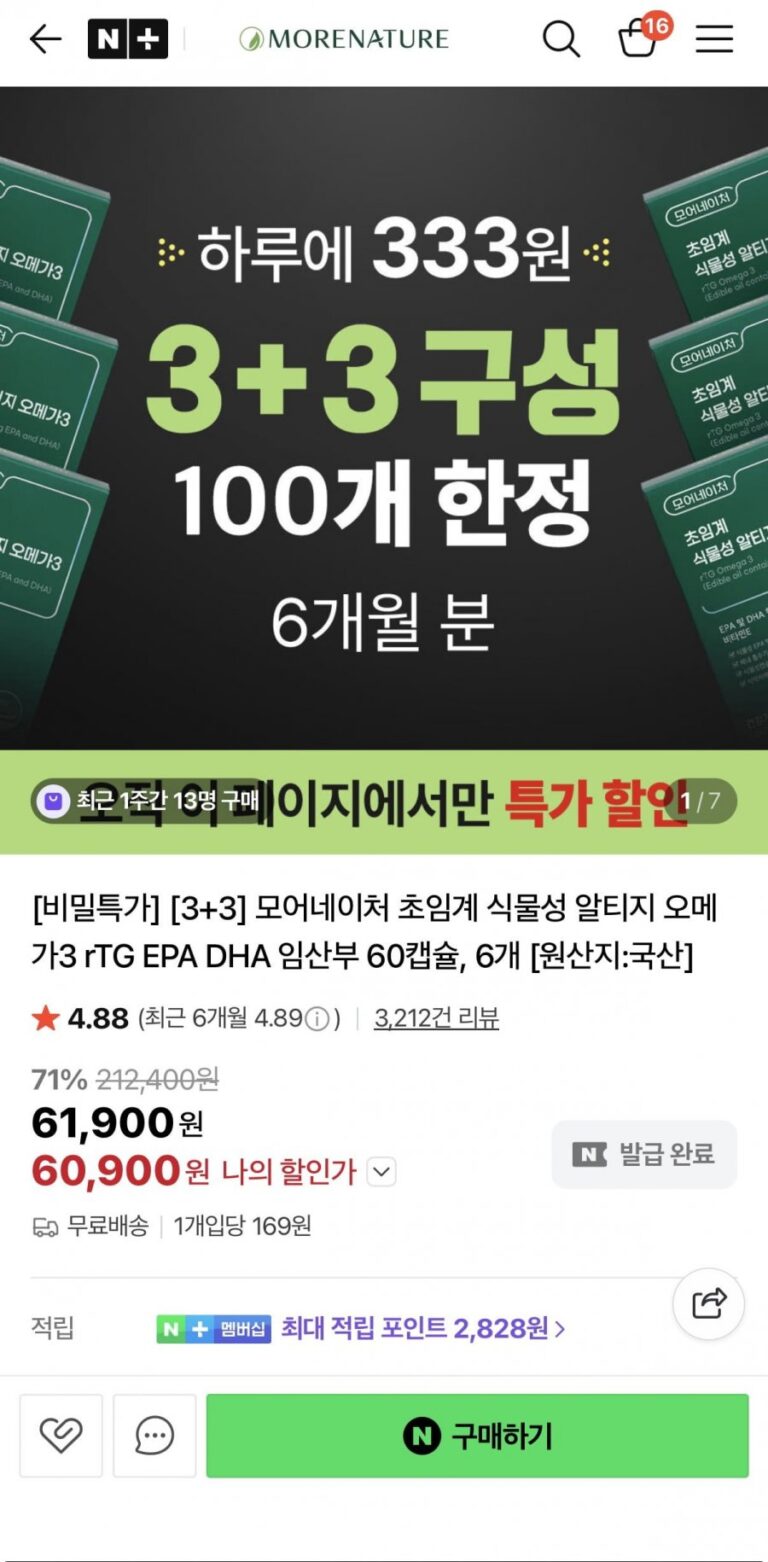 Rau củ siêu tới hạn rTG Omega 3 3+3