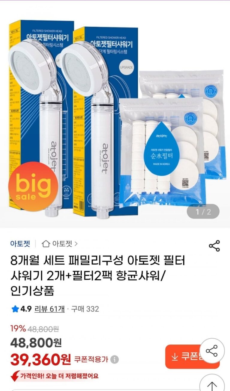 Thành phần gia đình gồm 2 vòi sen lọc Atojet + 2 gói lọc trong 8 tháng