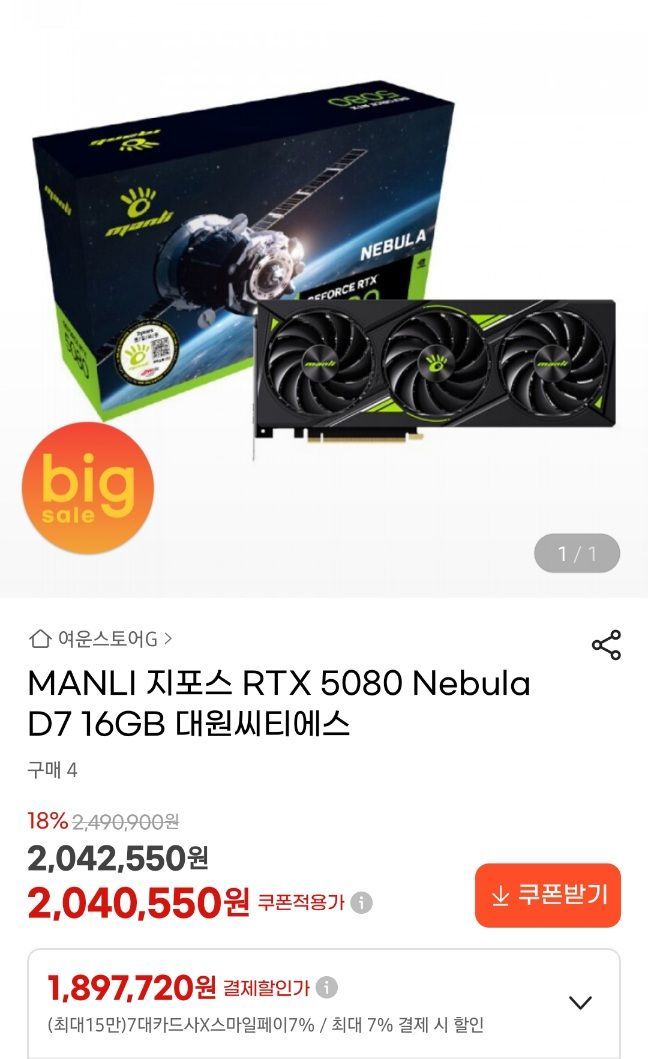 MANLI GeForce RTX 5080 Nebula D7 16GB Daewon CTS