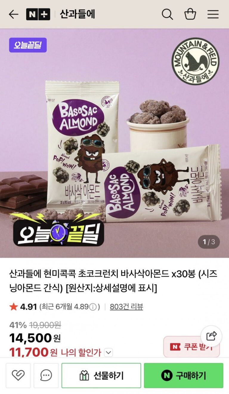Sangwadeul Choco Crunch Hạnh nhân giòn 20g 30 gói