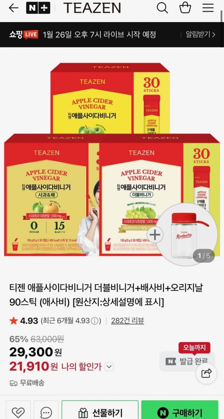 Giấm táo Teazen Double Giấm + Baesabi + Original 90 que