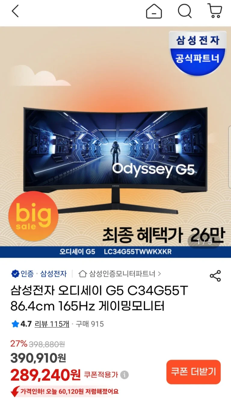 Samsung Electronics Odyssey G5 C34G55T 34 inch 165Hz