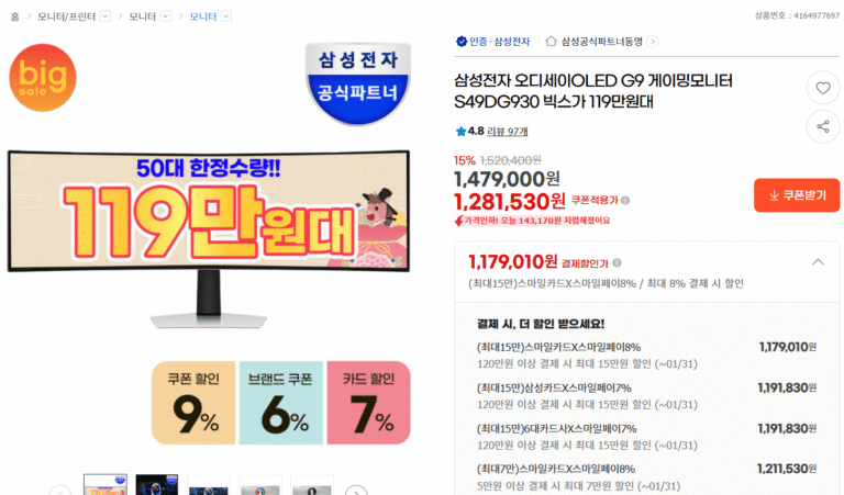 [G Market] Màn hình chơi game Odyssey OLED G9 S49DG930