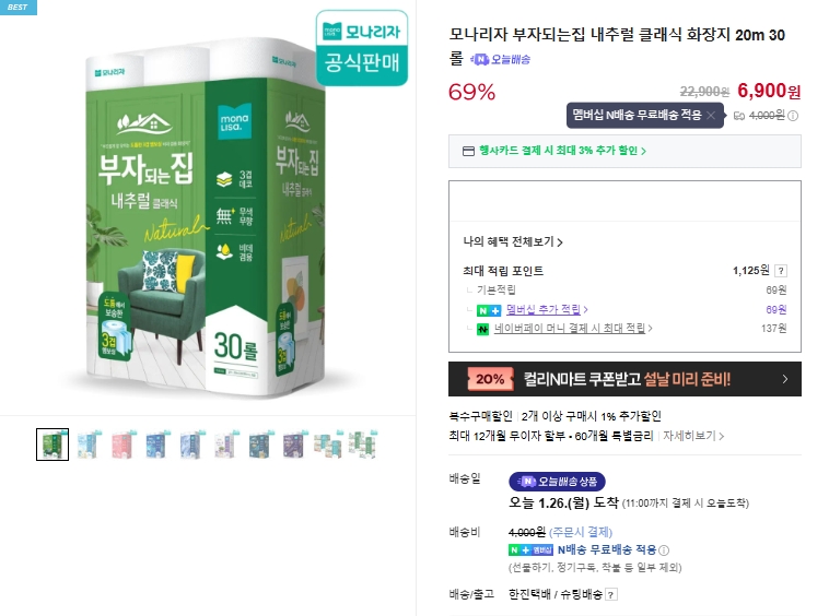 Giấy Vệ Sinh Mona Lisa Rich House 20M 30 Cuộn