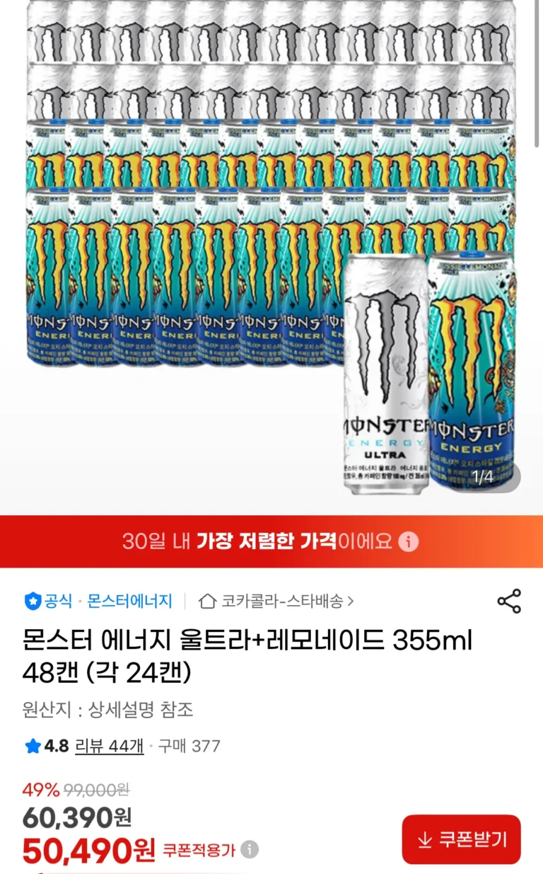 Monster Energy Ultra+Lemonade 355ml, 48 lon, mỗi hộp 24 lon