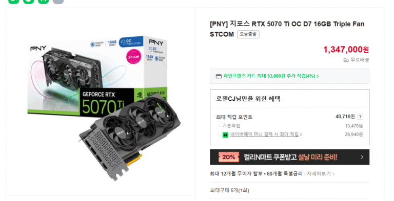 [Naver] PNY GeForce RTX 5070 Ti OC D7 16GB Quạt ba STCOM