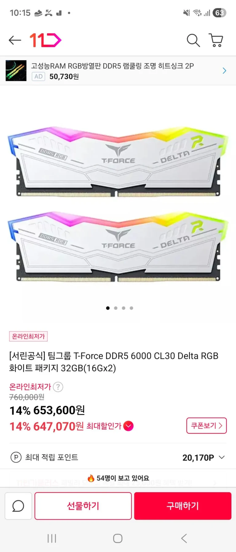 [Seorin Official] Team Group T-Force DDR5 6000 CL30 Delta RGB White Package 32GB (16Gx2)
