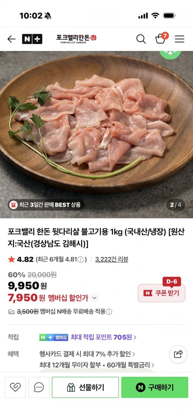[Naver] Thịt gà đùi gà không xương 2kg