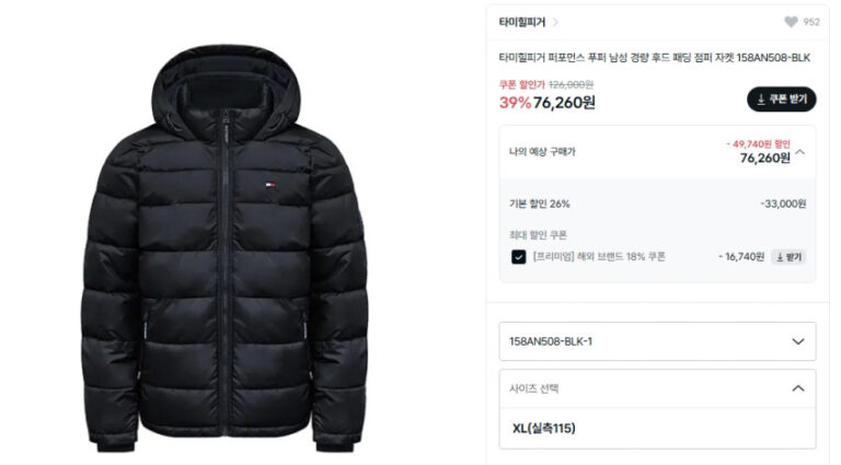 Đệm phồng hiệu suất Tommy Hilfiger
