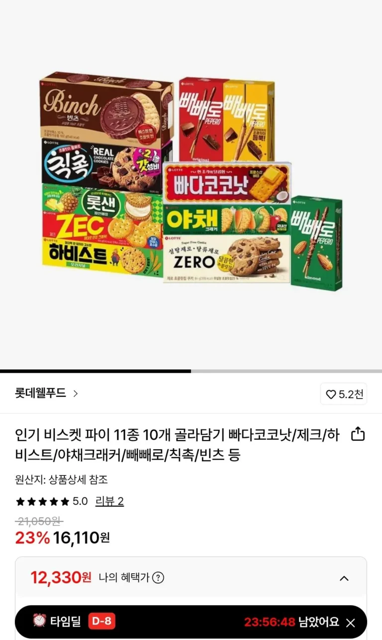 Chọn từ 10 loại bánh quy phổ biến của Lotte gồm 11 loại.