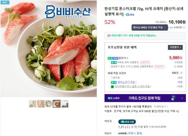 [Naver] Cua quái vật Hansung Enterprise 72g, 10 miếng